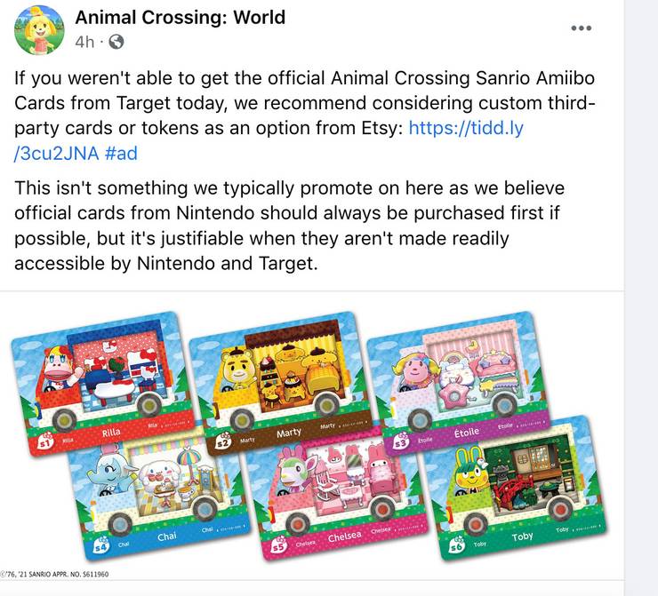 Nintendo Confirms Animal Crossing Sanrio Amiibo Cards Will Not Be Restocked Nintendosoup