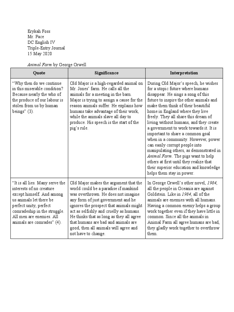 It signals the deterioration of Animal Farm from a society based on equal rights to a society in which those who are powerful determine who gets what rights. George Orwell Animal Farm. He was the hardest and best worker on the farm.